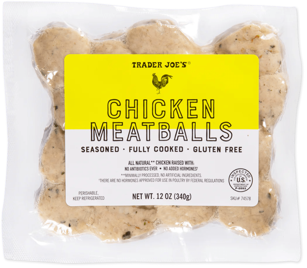 We like chicken meatballs because they can be a little less “gamey” than beef/pork, and I like these TJ’s meatballs in particular because they’re very clean–just chicken and spices.